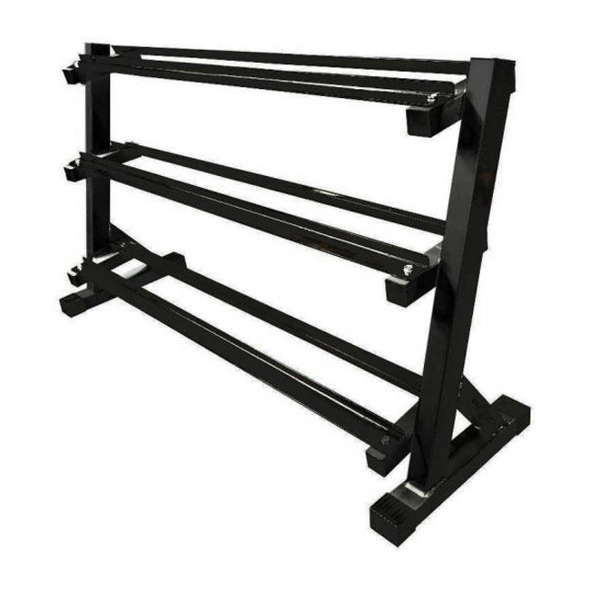 This 1441 Fitness 3 Tier Dumbbell Rack for 8 Pairs will look great in any home or commercial gym. This dumbbell weight rack stand is made of high-quality materials for added strength and longevity. This rack will allow you to safely and conveniently store your dumbbells. It has enough space to store up to 8 pairs of dumbbells, making it easier for you to stay organised in your workspace this storage rack allows you to quickly distinguish between different weights. It has robust pipes and can support weights of up to 500 kg. It's also small, so you may put it against the wall or in the middle of the room. Specifications : • It can take up to 12 pairs. • Weight Capacity is 453 Kg • Assembled Dimensions: 106 x 62.3 x 81.23 Cm (L x W x H)