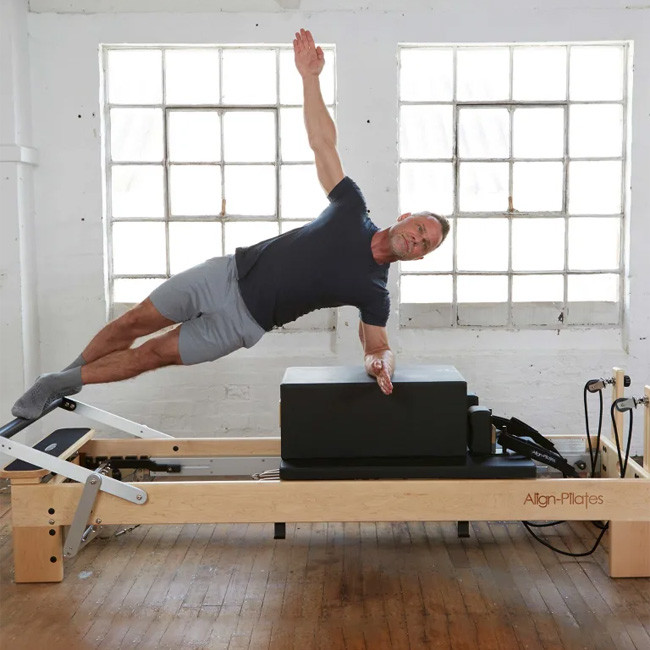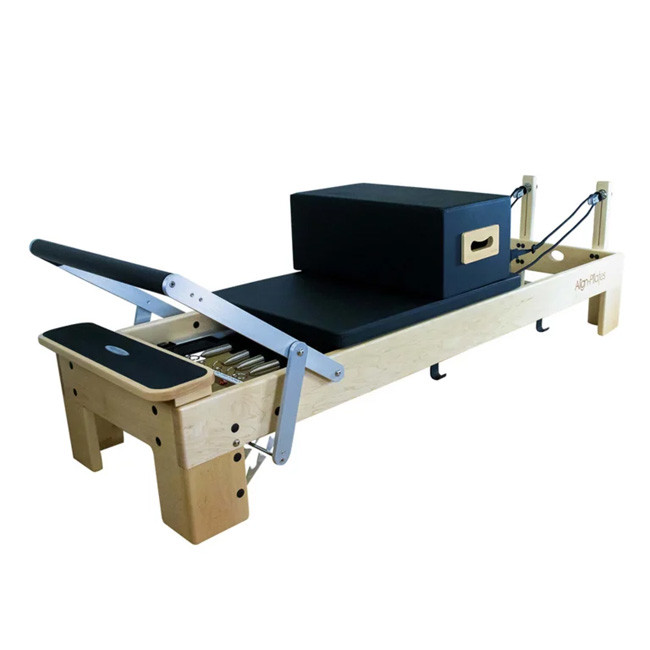 The Align-Pilates M8-Pro Pilates Reformer is made of solid North American Maple and combines traditional design with contemporary functionality. The M8-Pro provides 104cm of quiet, smooth travel in addition to extensive adjustability, a luxurious carriage, and refined performance.