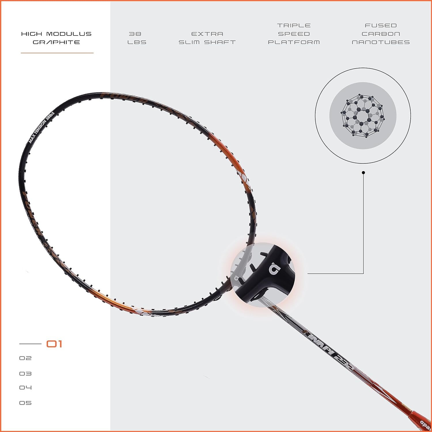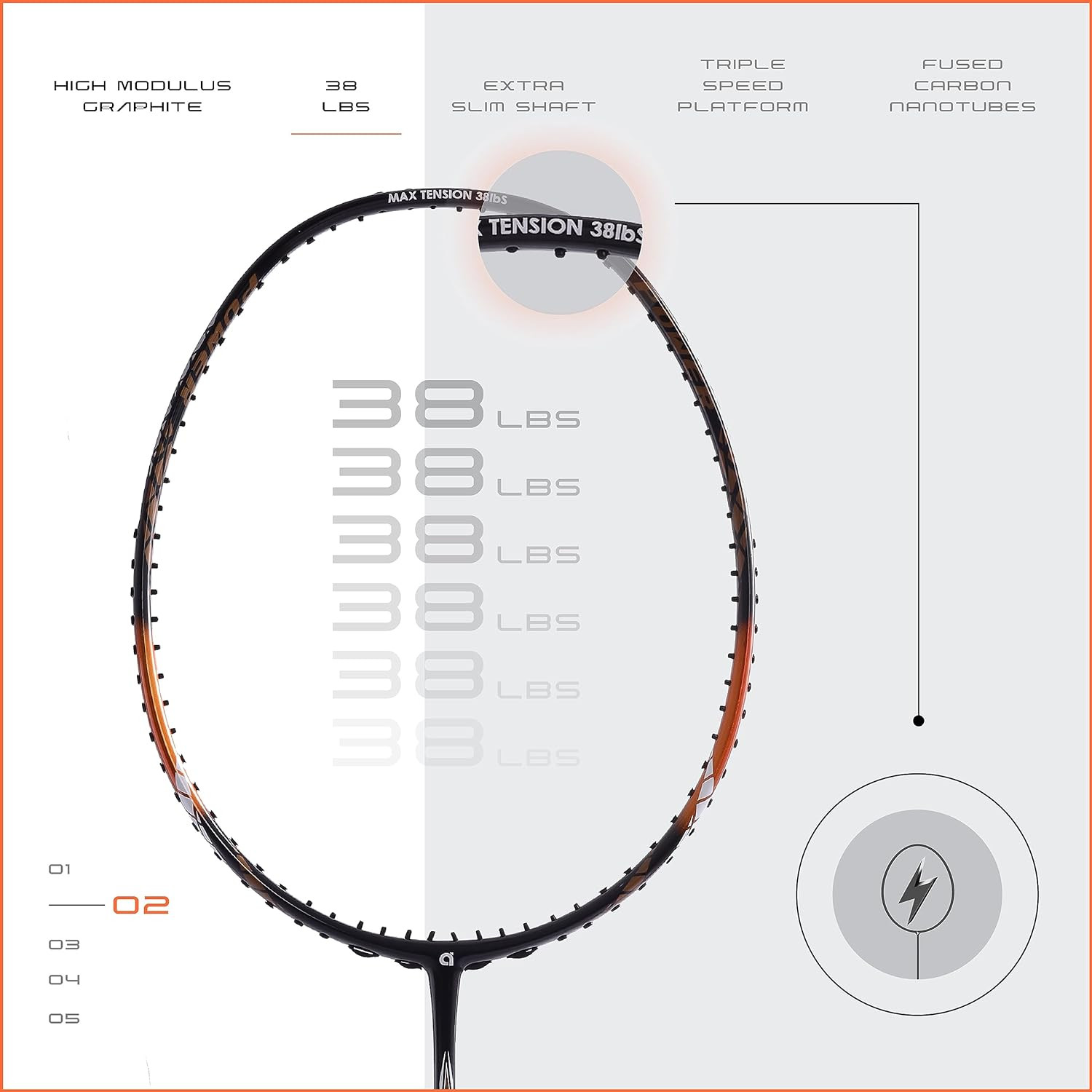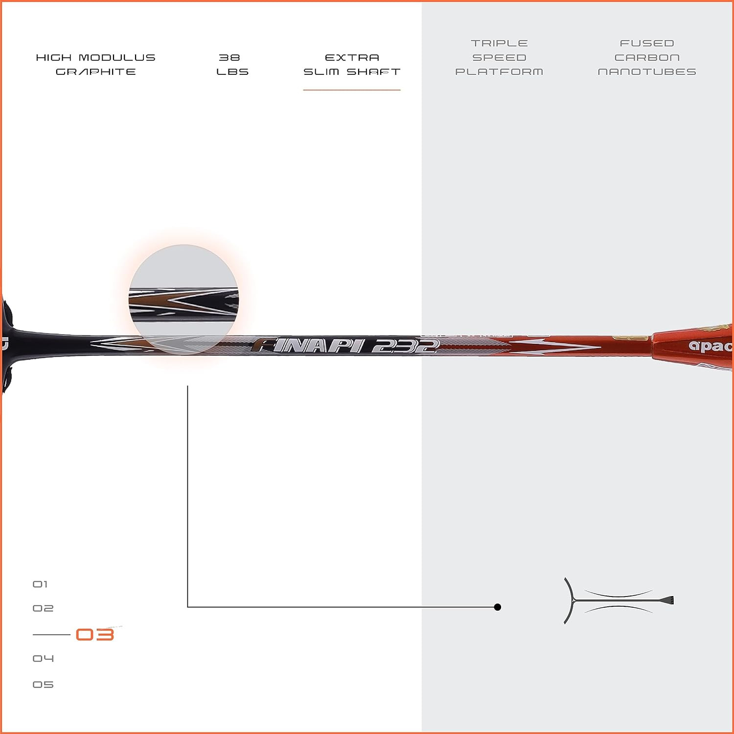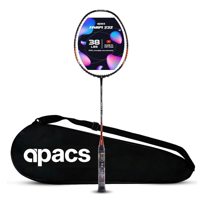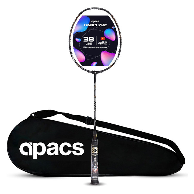 Finapi 232, a legendary racket known for it high tension capacity upto 38 LBS (Highest in the industry) and extreme durability from Apacs. Finapi 232 is developed with Carbon Nanotube material which increases the impact and bending strength of frame and shaft. Further, the base graphite material of racket is 24T Japan high grade graphite material. -This badminton racket is developed with new concept known as Triple Speed System Frame which gives additional power and strength to racket frame helps in better playing characteristics. -Racket is developed with high degree of frame aerodynamics offers less air resistance and helps in better racket speed. With better head speed player can place fast drive shots and effective cross corner shots with pin point accuracy. -Racket is medium flex racket offers optimized shuttle hold so that player will get best possible repulsion and power. -This racket is suitable for intermediate badminton players with all round type of playing skills , Playing who love to play powerful smash with effective control shots with like this racket most. -Frame shape of Finapi 232 is isometric which offers enlarge sweet spot area results into powerful shots delivery even if shuttle hits to off center.