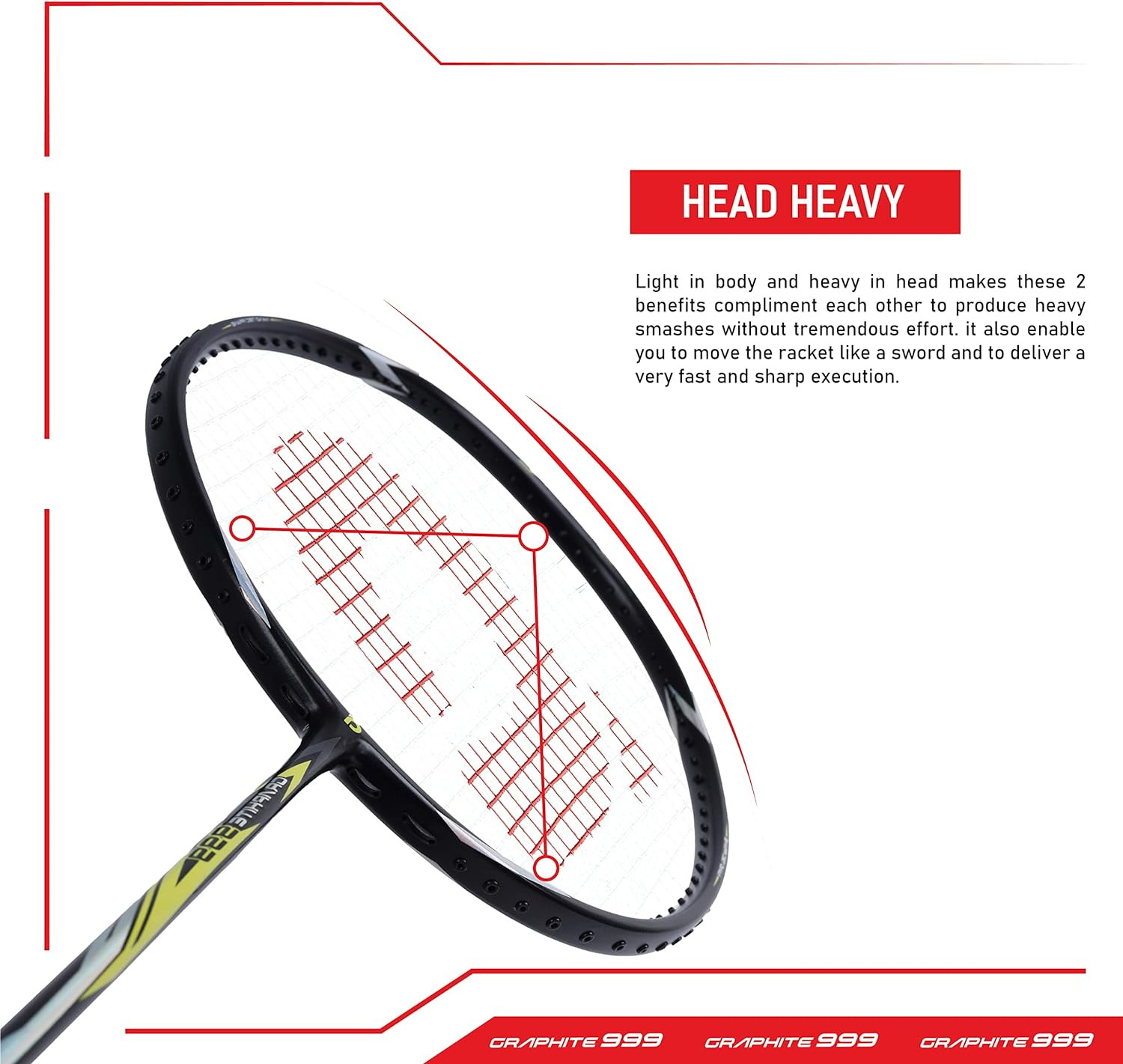 Crafted with a full graphite construction, making it ultra-strong and highly durable for extended use. Its lightweight design allows for swift and agile movements, while the ergonomic grip provides a comfortable and secure hold during gameplay.