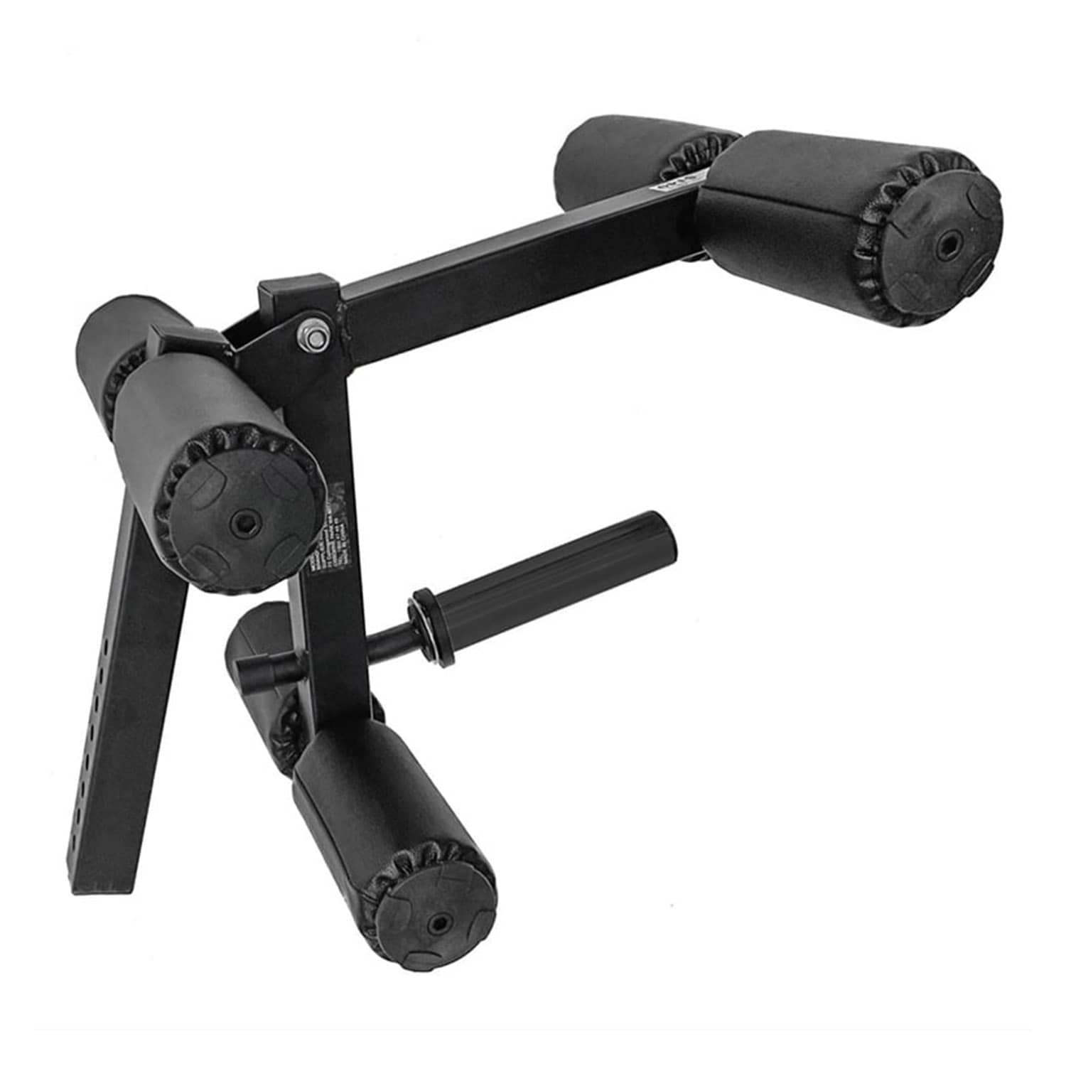 The BRUTEforce® SUPA808-L adjustable weights bench with leg extension and Leg curl attachment fits most of the Smith Machines, Power Racks and Multi-Press Racks. Other notable features include 6 adjustment settings, convenient positioned foot rollers and heavy-duty construction. It is a perfect addition to any home gym as it comes with all included leg extension/leg curl attachment.