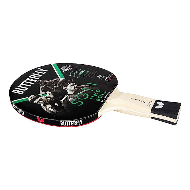 High quality leisure bat Butterfly Timo Boll SG11 for ambitous hobby players with Addoy rubber and 1.5 mm sponge. Innovative smart.grip handle technology for simple handle gripping and improved contact to the hand palm. Anatomic handle. With stickfix.