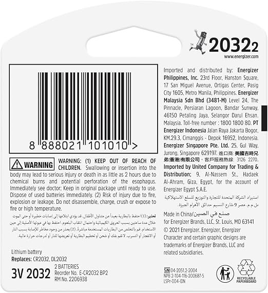 • Energizer Coin CR2032 3V (1x2)