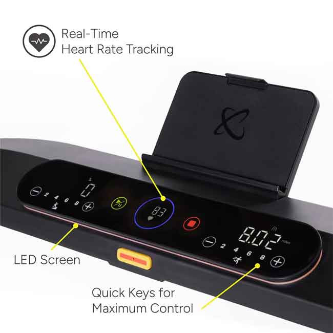 Powered by a 3.0 HP brushless DC motor, the CENTR Runr offers a quiet yet powerful workout experience. With speeds ranging from 1.0 to 10 mph and inclines up to 12%, it adapts to casual joggers and serious runners alike.