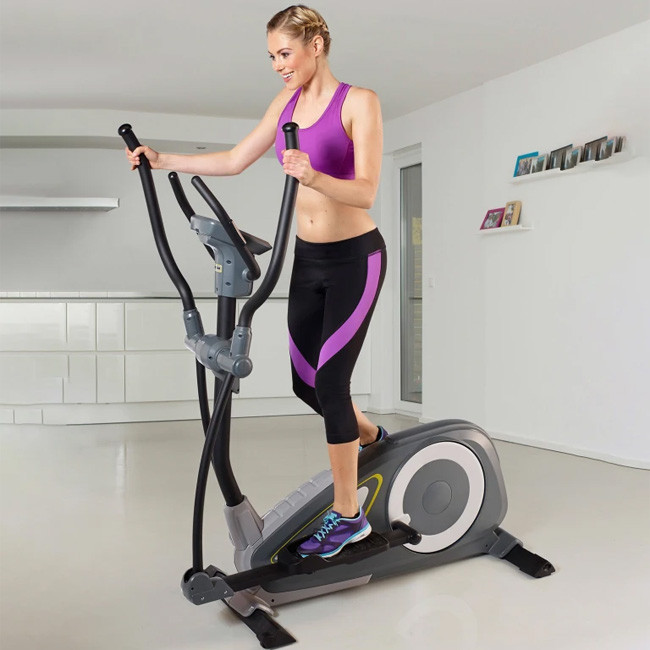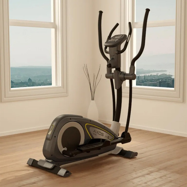 The computerized KETTLER AXOS LINE CROSS P model features a magnetic brake system that is controlled by a motor. The advantages of this exercise machine include a 14 kg flywheel system, a 16-level resistance adjuster, a training computer with 12 programs, and a 4-person memory. The hand pulse sensors integrated into the handlebars take your pulse.