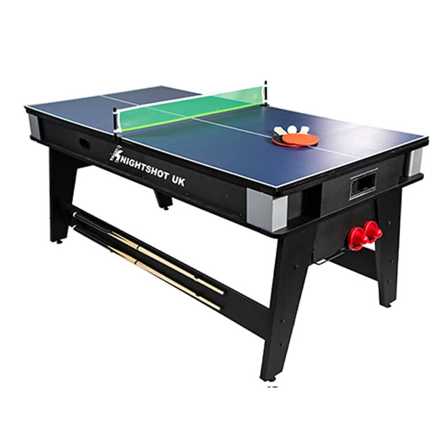 This multi-game table is perfect for switching back and forth between sports. You don't need a game room. Easily play air-powered hockey, billiards, and table tennis, for hours on end, and also have a classic dining top. Ideal for any gathering, this 4-in-1 table brings the action and excitement of air-powered hockey, billiard, and table tennis, to your home. The table offers convenient built-in storage for all of the accessories for each game.