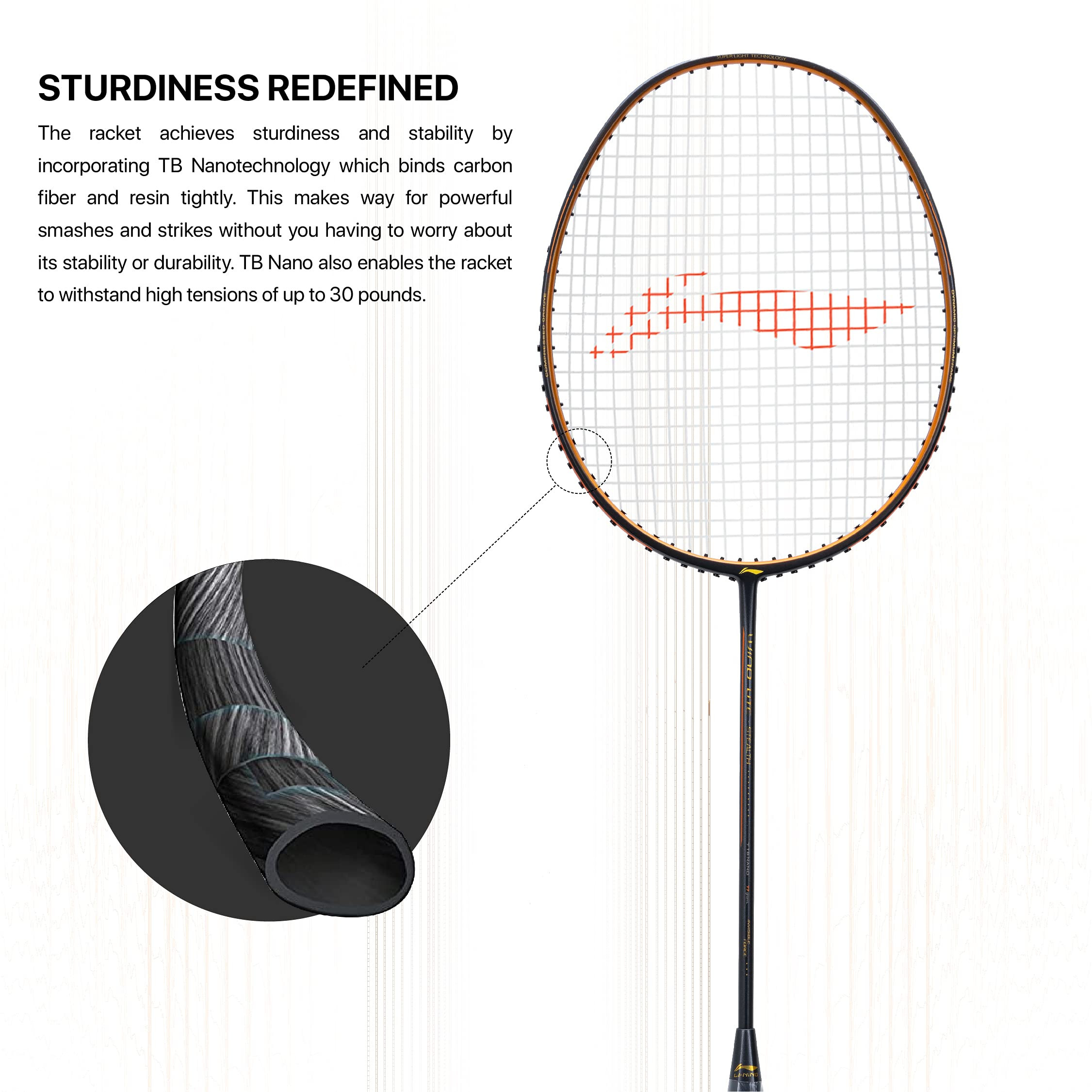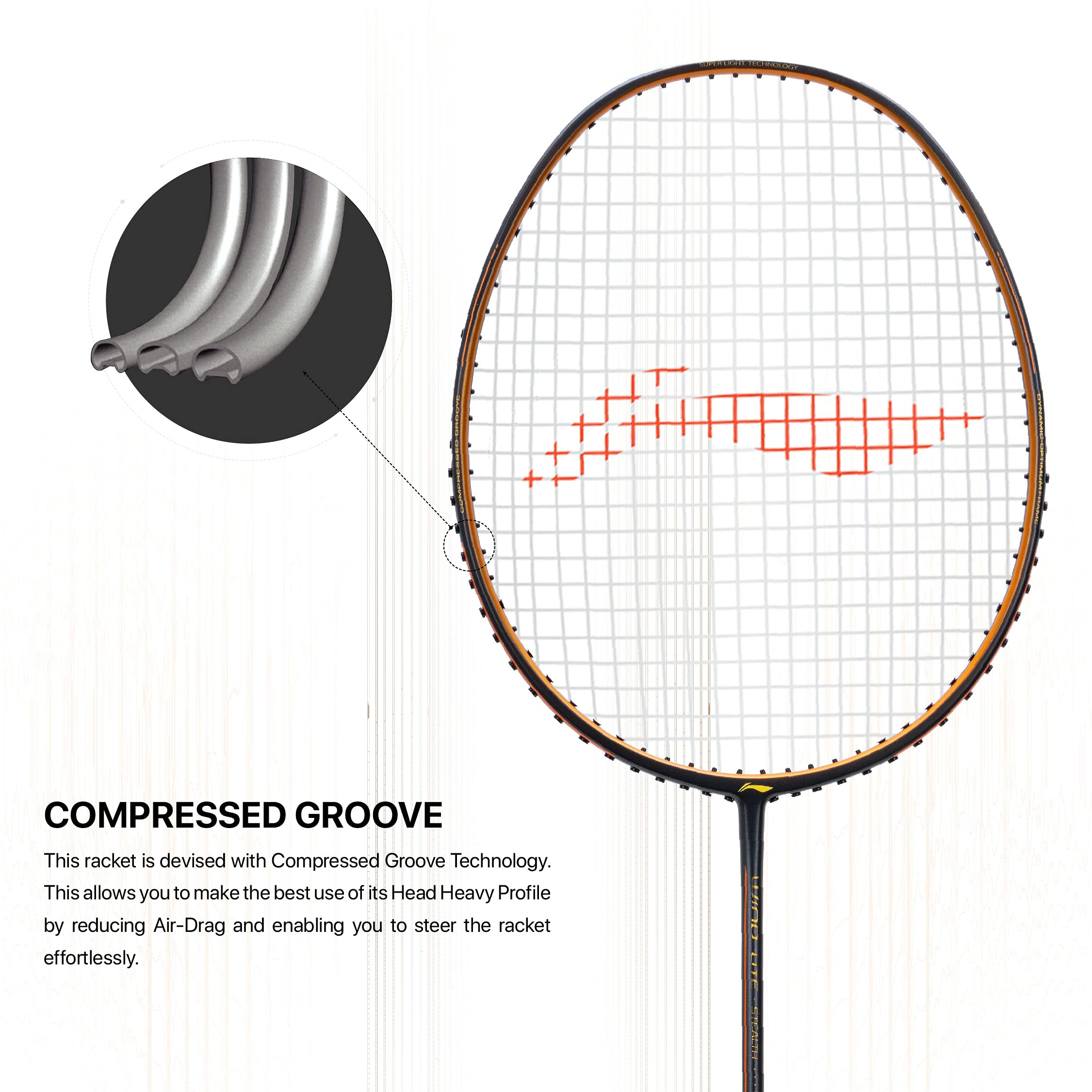 The Li-Ning Wind Lite Stealth is a powerful racket that helps you maintain momentum throughout the game. This Superlight technology-powered racket hands you the advantage of invisible force. It is a very lightweight racket that you can use to seamlessly move around on the court. The Compressed Groove technology adds dynamism to your strikes making them effective like never before. It is a head-heavy racket that is sure to compliment your attacking style of play. So if you are looking to add a powerful racket to bolster your smashes and returns then this is the one.
