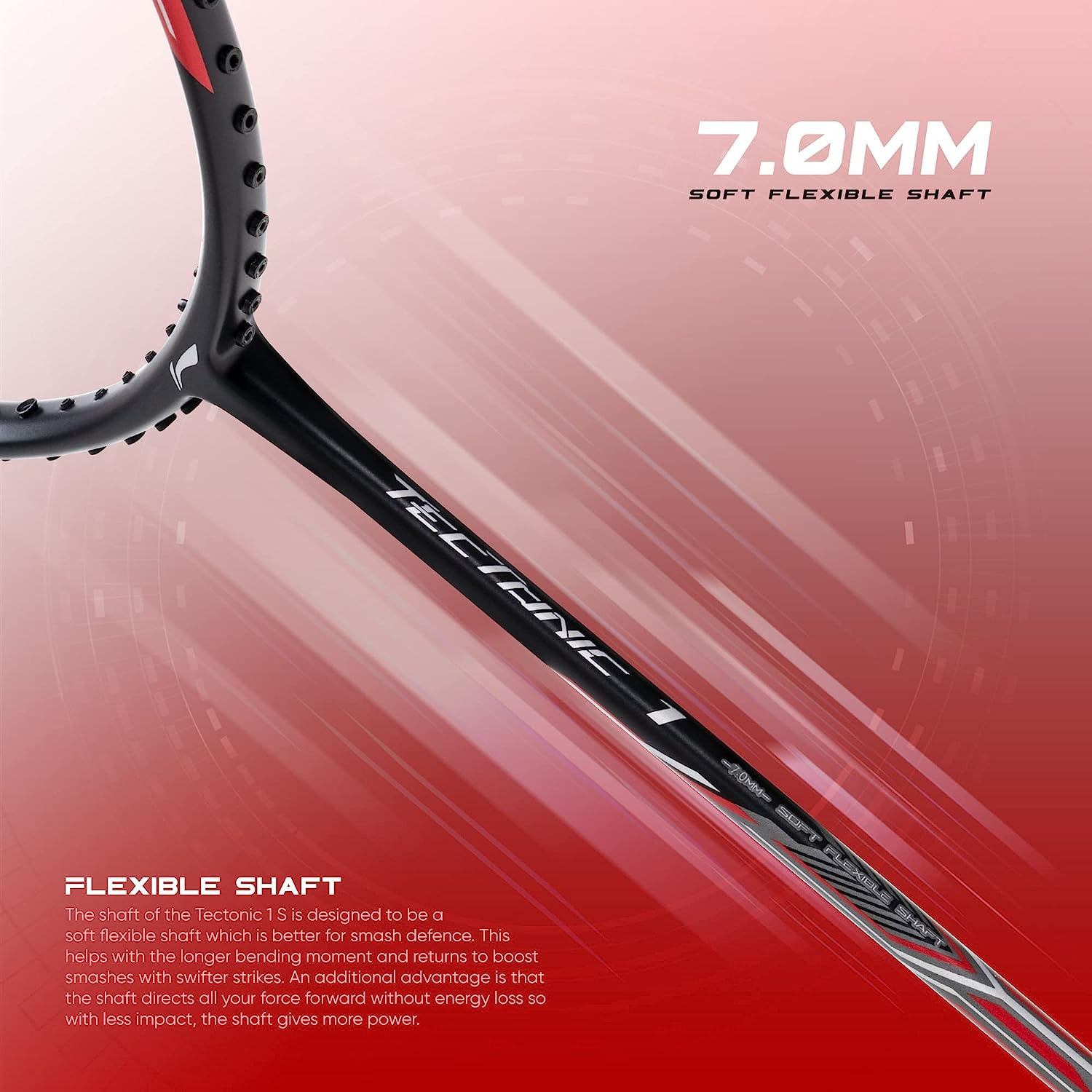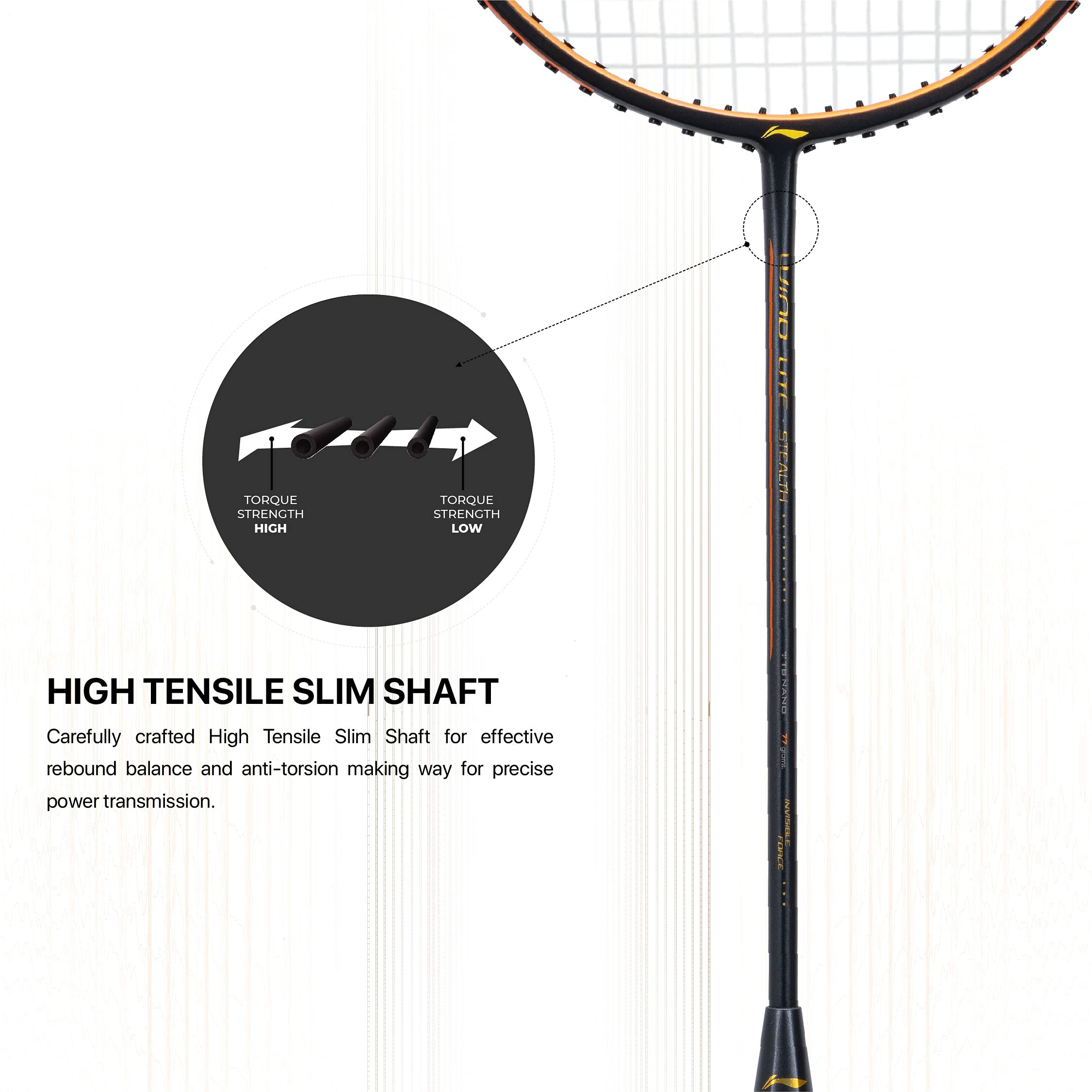 The inclusion of the Aerotec Beam System minimizes air resistance, giving players an aerodynamic advantage that is especially important for speed-type playstyles. Paired with the Stabilized Torsion Angle, the racquet maintains superior frame stability, resisting twisting during off-center hits and enabling cleaner, more accurate shuttle placement.