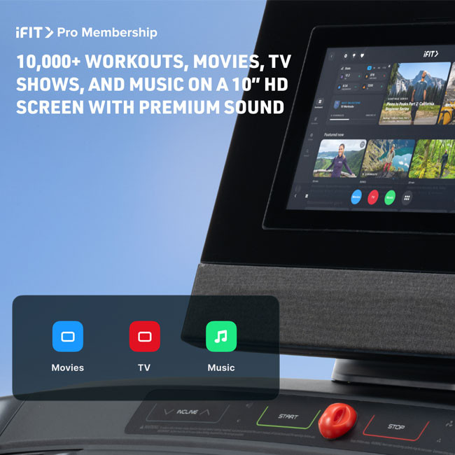 Yes — the 10" HD display tilts to improve sightlines for off-equipment sessions like strength, yoga or mobility classes. That pivoting feature makes the screen more versatile: angle it forward for treadmill runs and rotate it when you step off to follow guided off-equipment training sessions in iFIT or other platforms.