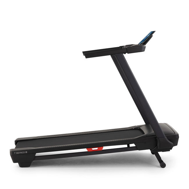 Despite supporting a 159 kg maximum user weight, the treadmill remains home-friendly thanks to the SpaceSaver® folding frame with EasyLift™ Assist, allowing compact storage.
