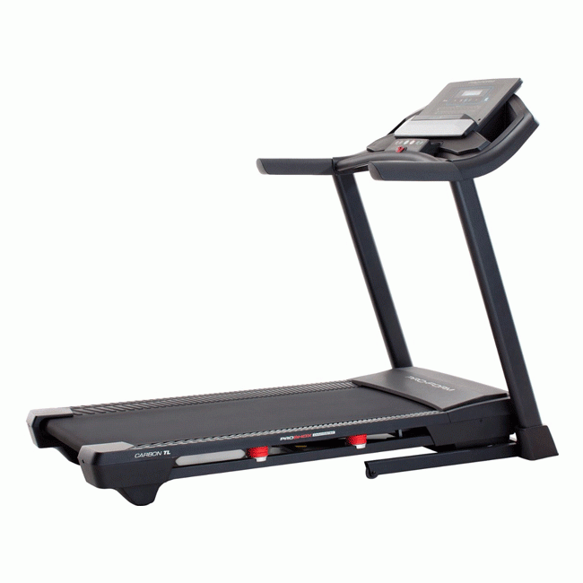 The ProForm Carbon TLX Treadmill is a durable, foldable treadmill built for home training. Powered by a 3.0 CHP motor, it supports speeds up to 12 mph (19 km/h) and inclines up to 12% for versatile workouts. The 7" high-contrast multi-color display provides clear feedback on time, distance, calories, and performance. With ProShox™ cushioning, the treadmill reduces joint impact, making runs more comfortable and sustainable. Precision-machined 1.9” rollers ensure smooth operation and reduced noise. Compact yet sturdy, it’s designed for everyday training, from brisk walks to challenging runs. The Carbon TLX is perfect for fitness enthusiasts looking for a reliable treadmill with space-saving features and easy controls.