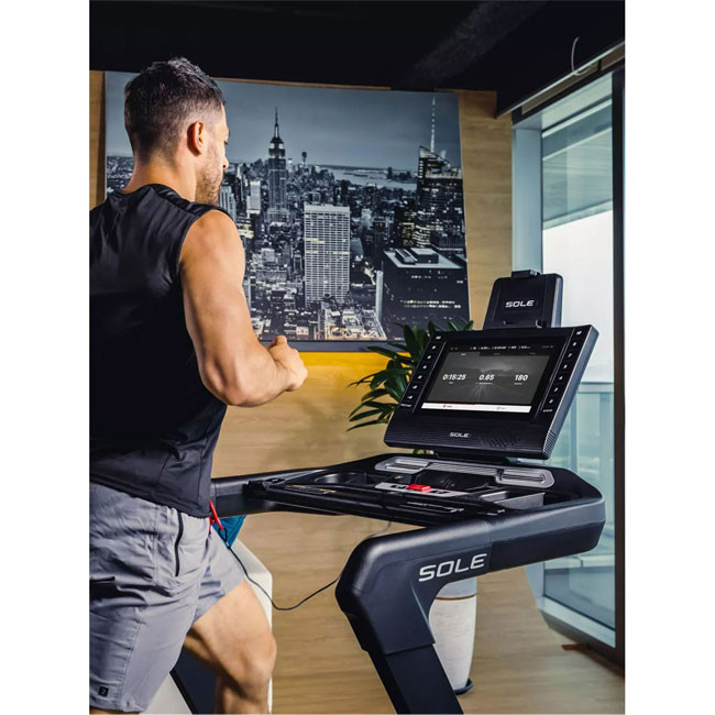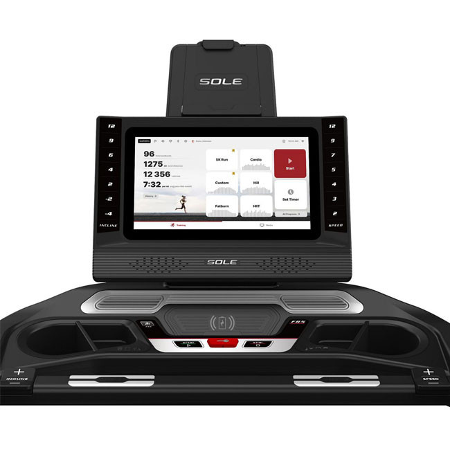 The brand-new Sole F85 treadmill features a sleek, modern design, a sturdy steel Z frame, a big, powerful 4HP motor, and a lifetime warranty. The wide 22 X 60" running surface, a new 15.6" Touch Screen that connects you to a variety of workout and media options, and Garmin Connect are all included, maintaining the legacy of the F85. Include a new wireless 2amp charging pad, a new display console design with a tablet holder and cooling fans, and sole reliability for everything.