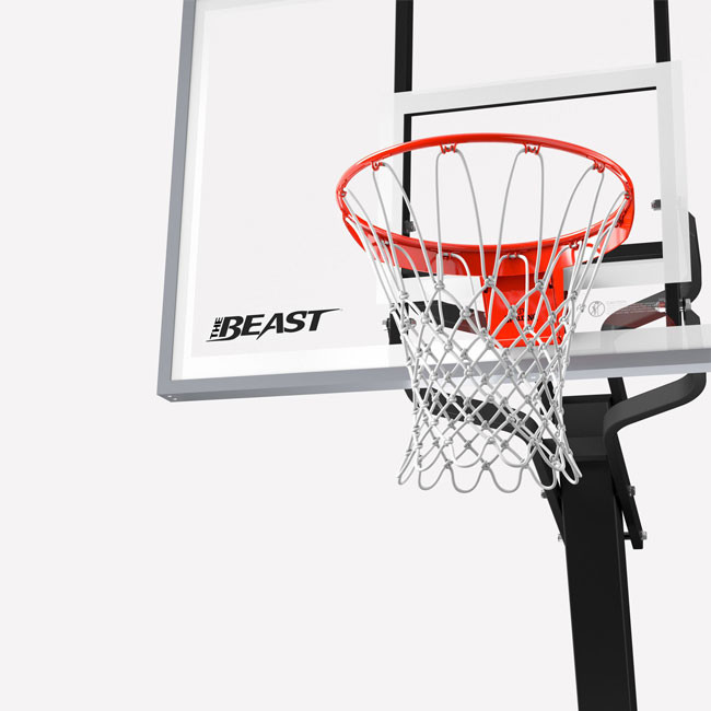 The Beast features a 60" tempered glass backboard, professional-grade rim, and a massive base for unmatched stability and authentic rebound feel.