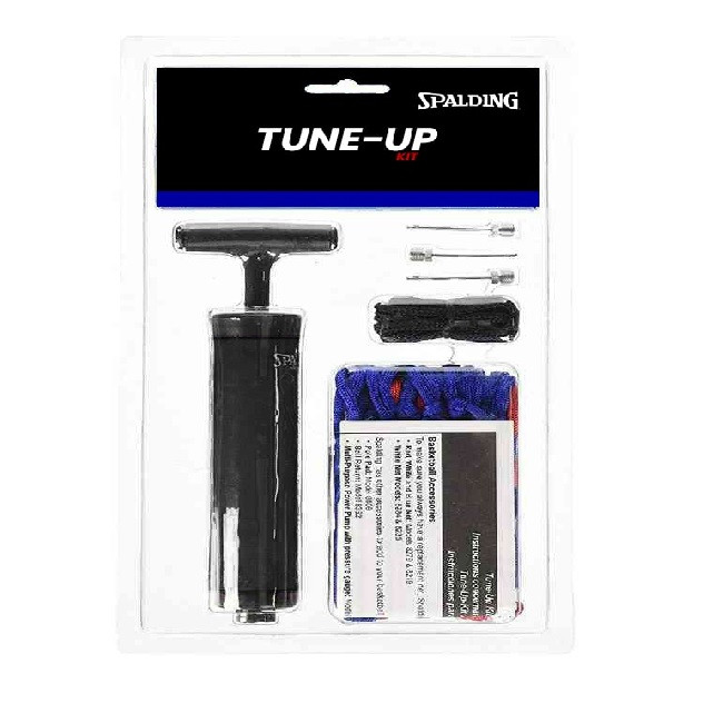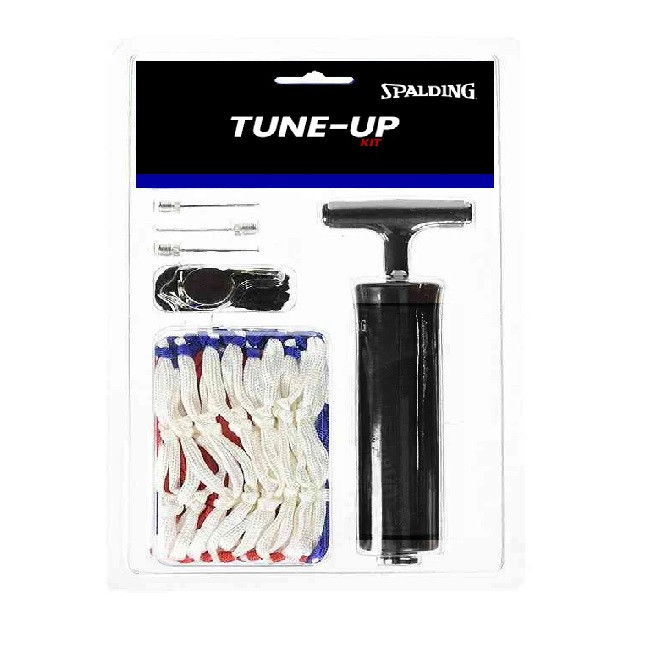 Always be one step ahead of the situation. Any air-filled sports ball can be used with the single action pump included in the Spalding Basketball tune-up kit. A whistle, three inflation needles, and an all-weather basketball net are also included. Spalding Basketball Tune-Up Kit SN8300SPCN