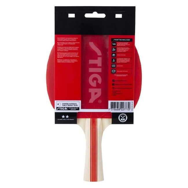 The Stiga Oracle is a table tennis bat designed for recreational players who enjoy playing table tennis occasionally. It has a 1-star rating, which means it is suitable for beginner players who are still developing their technique and style. The bat features a concave handle for a comfortable grip, and the surface is made of rubber that provides good control and spin. The blade is made of wood, which gives the bat a good balance of speed and control.The Stiga Oracle is a good choice for players who want a reliable and affordable table tennis bat for casual play. It is easy to use, lightweight, and has a good balance of speed and control. It is also durable and can withstand regular use. While it is not suitable for advanced players who need more power and speed, it is a great option for beginners who want to improve their skills and have fun playing table tennis.
