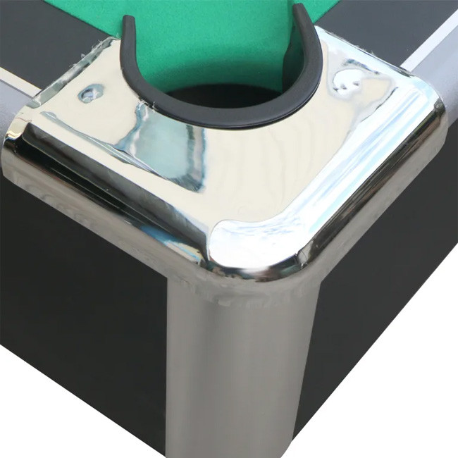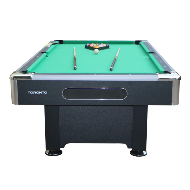 The Toronto GP020 Pool/Billiard Table, boasting a 8 feet size with dimensions of 244 x 132 x 81cm, is a premium addition to home gaming setups. The playing court is meticulously crafted with MDF and adorned with a luxurious green velvet surface, providing players with a professional-grade gaming experience. The rail corners feature intricate plastic chromed detailing, adding a touch of elegance to the table. The adjustable leg levelers, made from durable ABS chromed material, ensure stability and customizable setup options. This pool/billiard table combines superior craftsmanship and design, making it an ideal choice for recreational and enthusiast players alike.