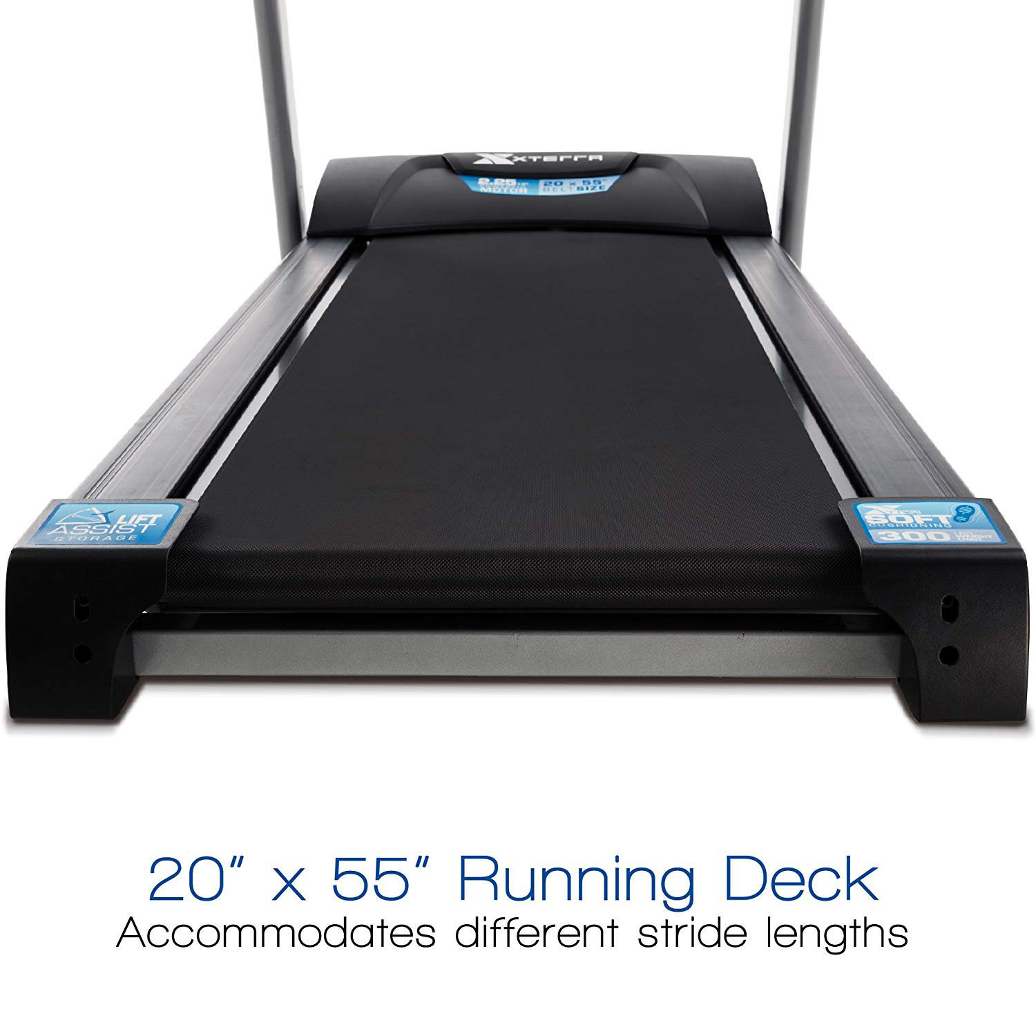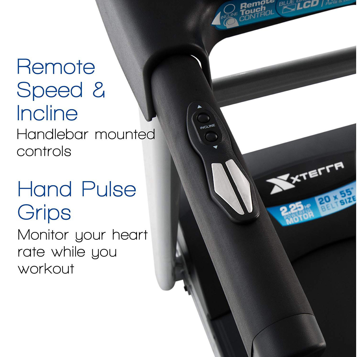 The powerful XTERRA 2.25 HP motor provides speeds up to 10mph while the users can also vary the large 20” x 55” belt to incline levels from 0-10% for maximum workout variety.