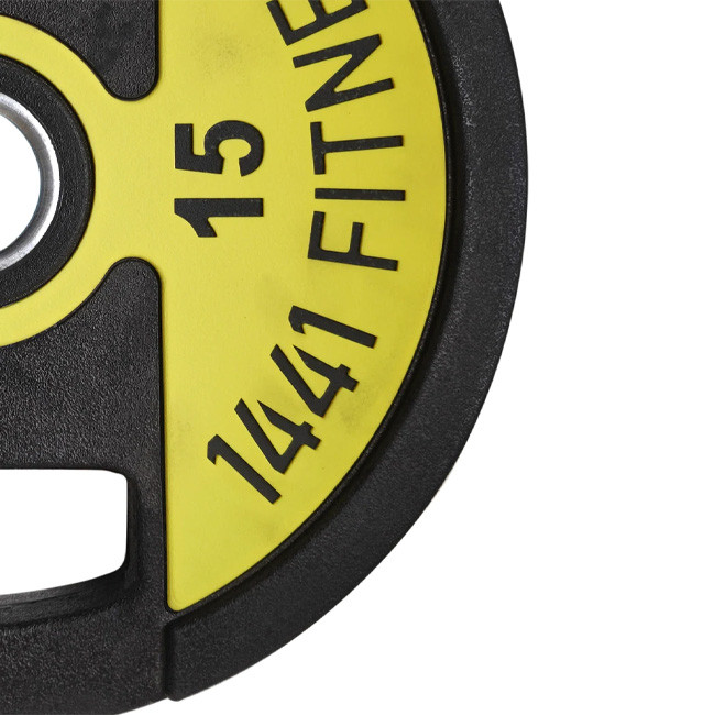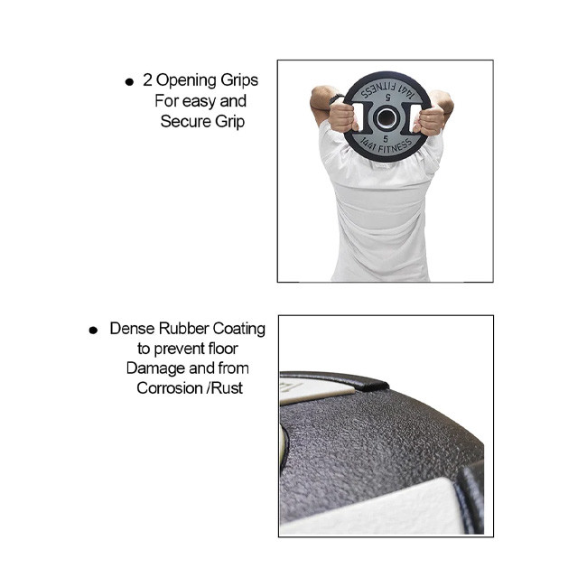 1441 Fitness dual grip olympic weight plate with PU coating is easy to lift and protect the disc and floors from cracking. Workout has never been so easier with the Tri-Grip Olympic PU rubber Weight Plate available at Prosportsae. It reduces disc noise and resists rusting. The grip plate is specially designed with a tri-grip handle that offers a firm hold while doing exercises and also makes the lifting or loading on the bars easy. The gym weight plate is good for strength training, weight lifting, squats, chest exercises, and more to complement your strength training .
