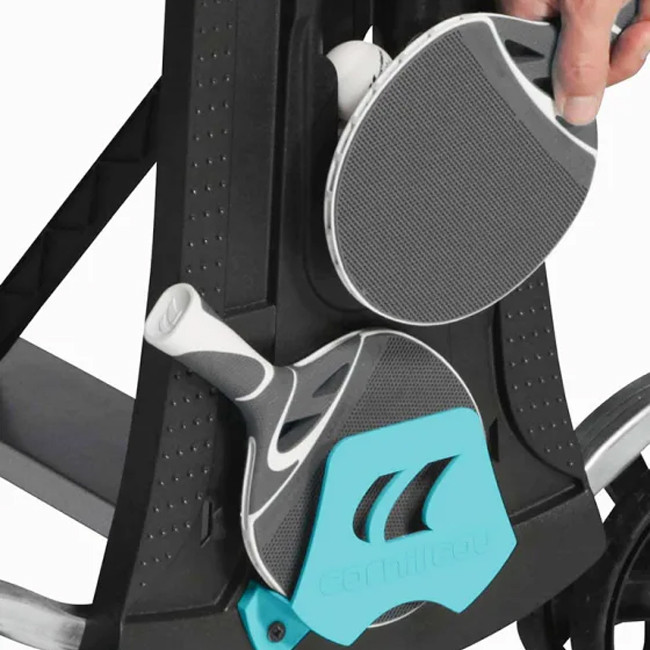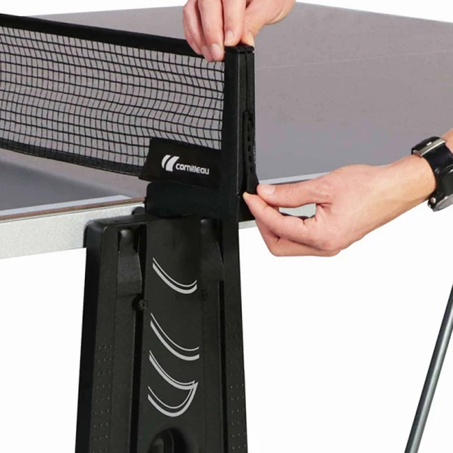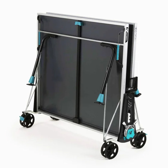 The Cornilleau 300X Outdoor Table is height-adjustable legs and comes with large wheels. You can take it to take on any terrain and is sharp and precise. The handy storage features and innovative system makes the table simple and effective. The 5mm-thick resin laminate playing surface is perfect for everyday use. The Cornilleau tables suits beginners and more experienced players alike. Its SOFTMAT finish reduces the intensity of the sun’s rays and swivel pads located at the bottom of the feet adapts to any type of floor. The frame is made of aluzinc which is corrossion-resistant and contains steel, aluminum and zinc. The solid core laminate table top of the 300X withstands eavy rain, snow, and extreme heat. The COMPACT TECHNOLOGY® folding system avoids the risk of the table losing its balance. Its oversize double wheels allows you to take your game into unexplored territory.