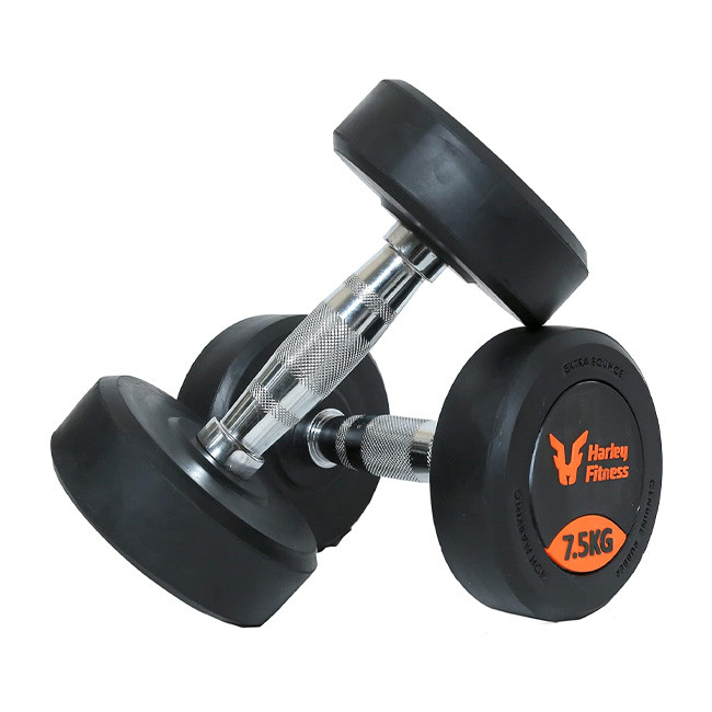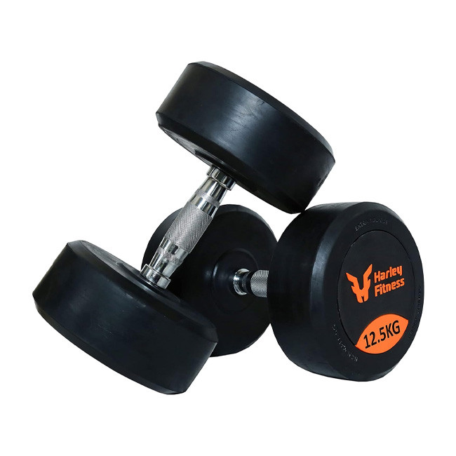 HARLEY FITNESS PREMIUM RUBBER COATED ROUND DUMBBELL - PAIR