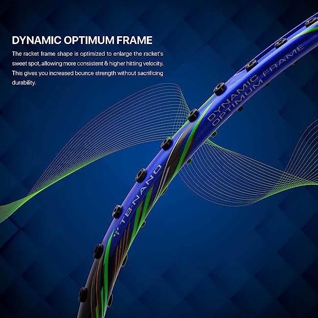 • Dynamic Optimized Frame - The racket frame is engineered to enlarge the racket's sweet spot, allowing more consistent & higher hitting velocity and increased bounce strength without sacrificing durability.
