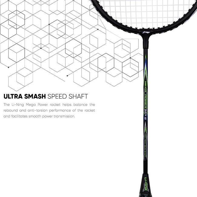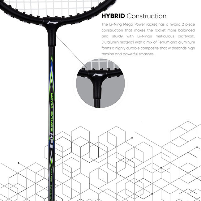 • HYBRID CONSTRUCTION - The Li-Ning Mega Power racket has a hybrid 2 piece construction that makes the racket more balanced and sturdy with Li-Ning's meticulous craftwork. Duralumin material with a mix of Ferrum and aluminum forms a highly durable composite that withstands high tension and powerful smashes.