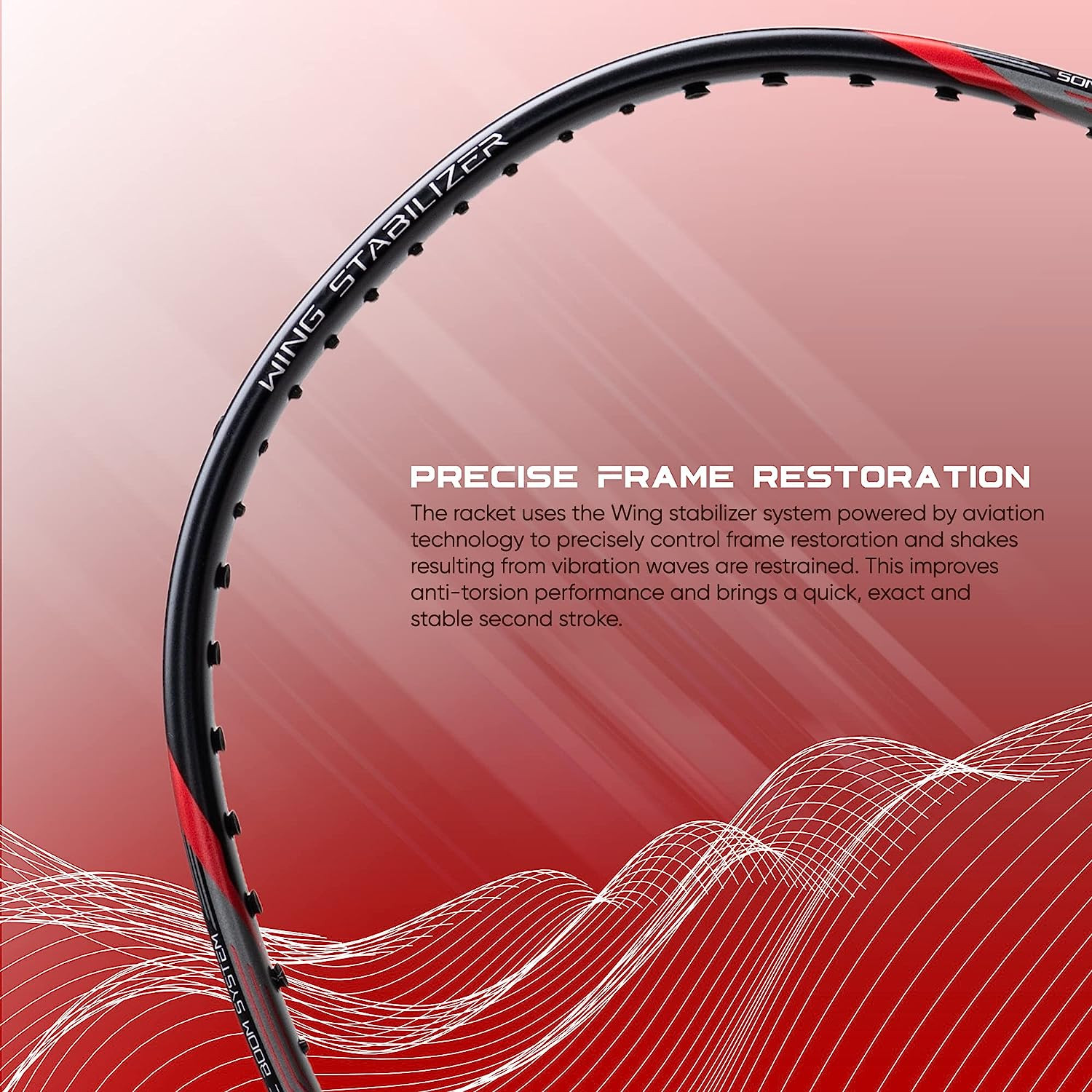 • Precise Frame Restoration: The racket uses a Wing stabilizer system powered by aviation technology. This improves anti-torsion performance and brings a quick, exact and stable second stroke.