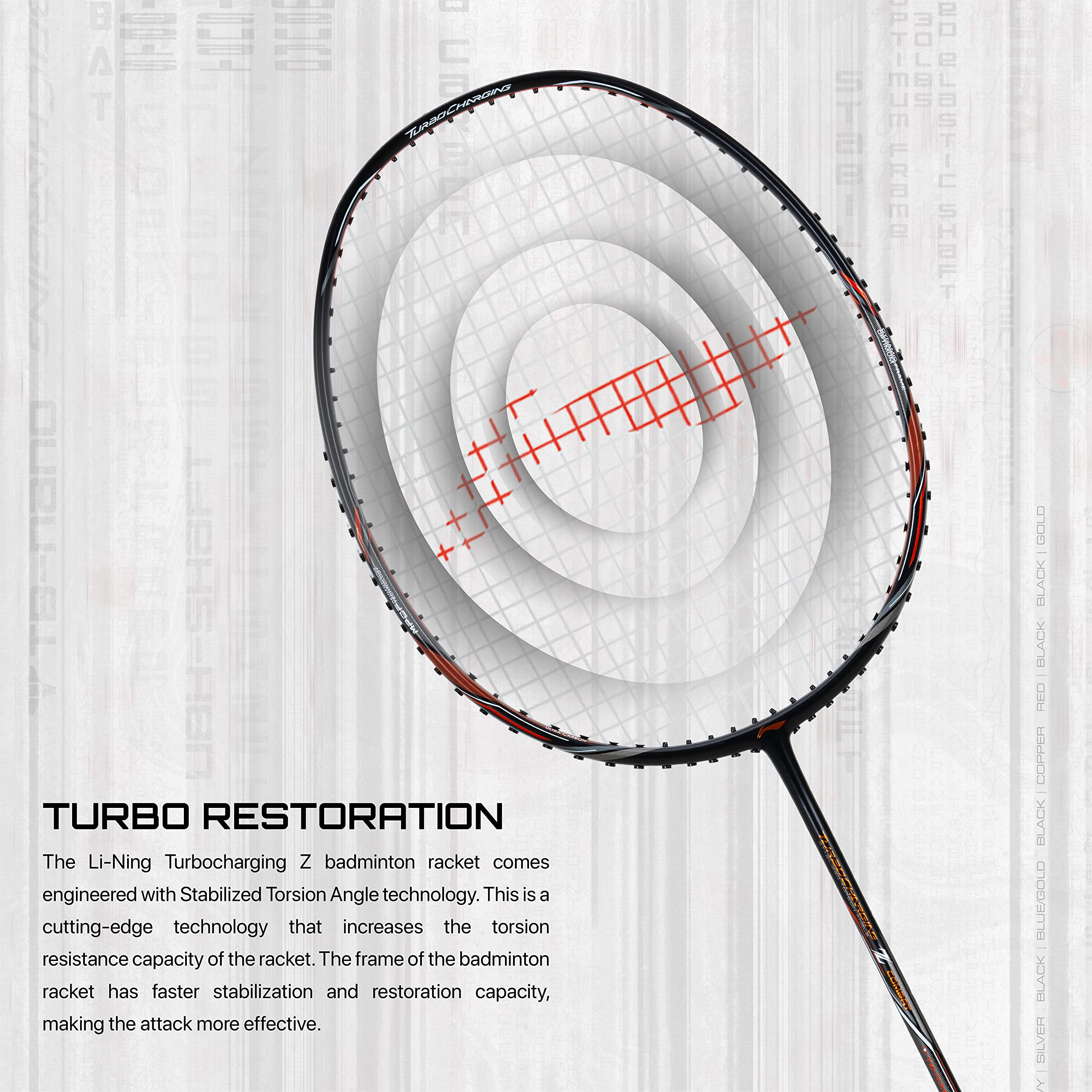 The Li-Ning Turbocharging Z is a top gun that promises fast-paced gameplay. The Turbocharging Z racket features a trapezoidal frame construction for aerodynamic efficiency. This allows you to generate strong and fast swing motions and return the shuttlecock with ease and grace.